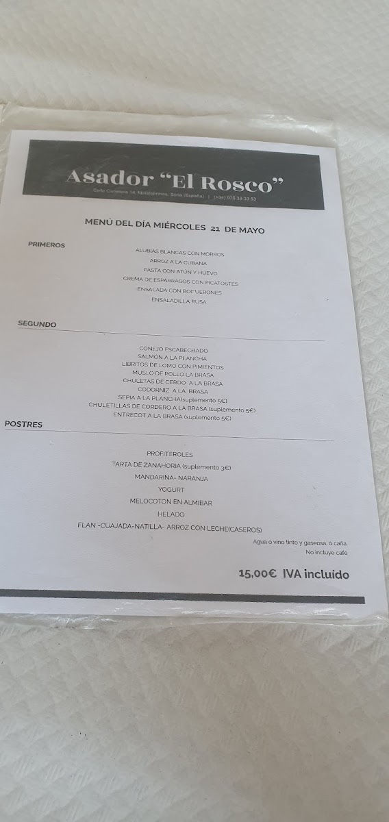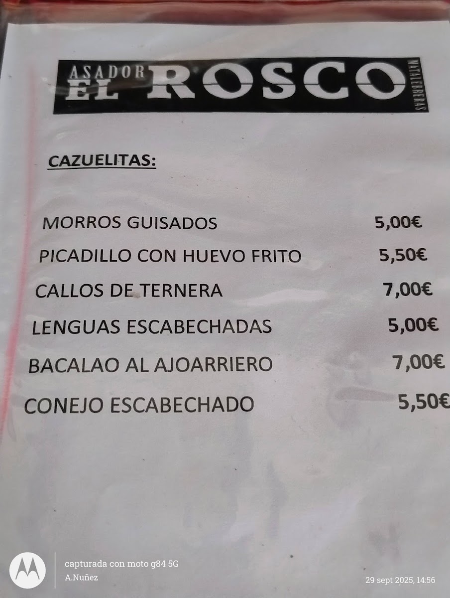 Asador El Rosco Menu